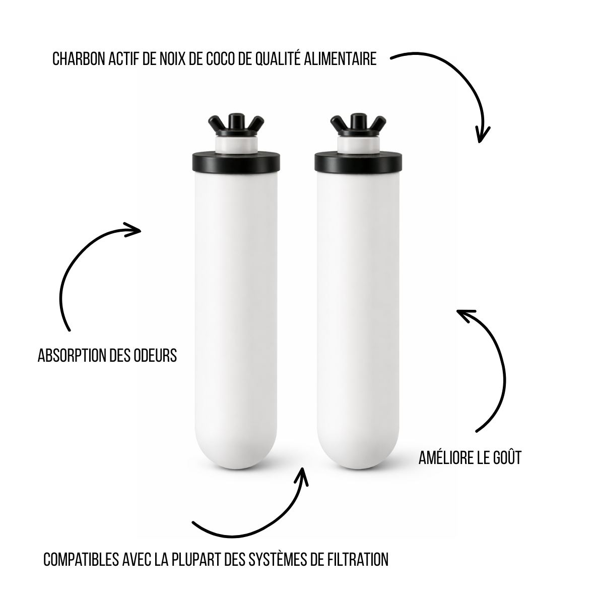 Ces éléments filtrants s’installent dans le réservoir supérieur et participent au fonctionnement mécanique normal de l’appareil par écoulement naturel, sans électricité.